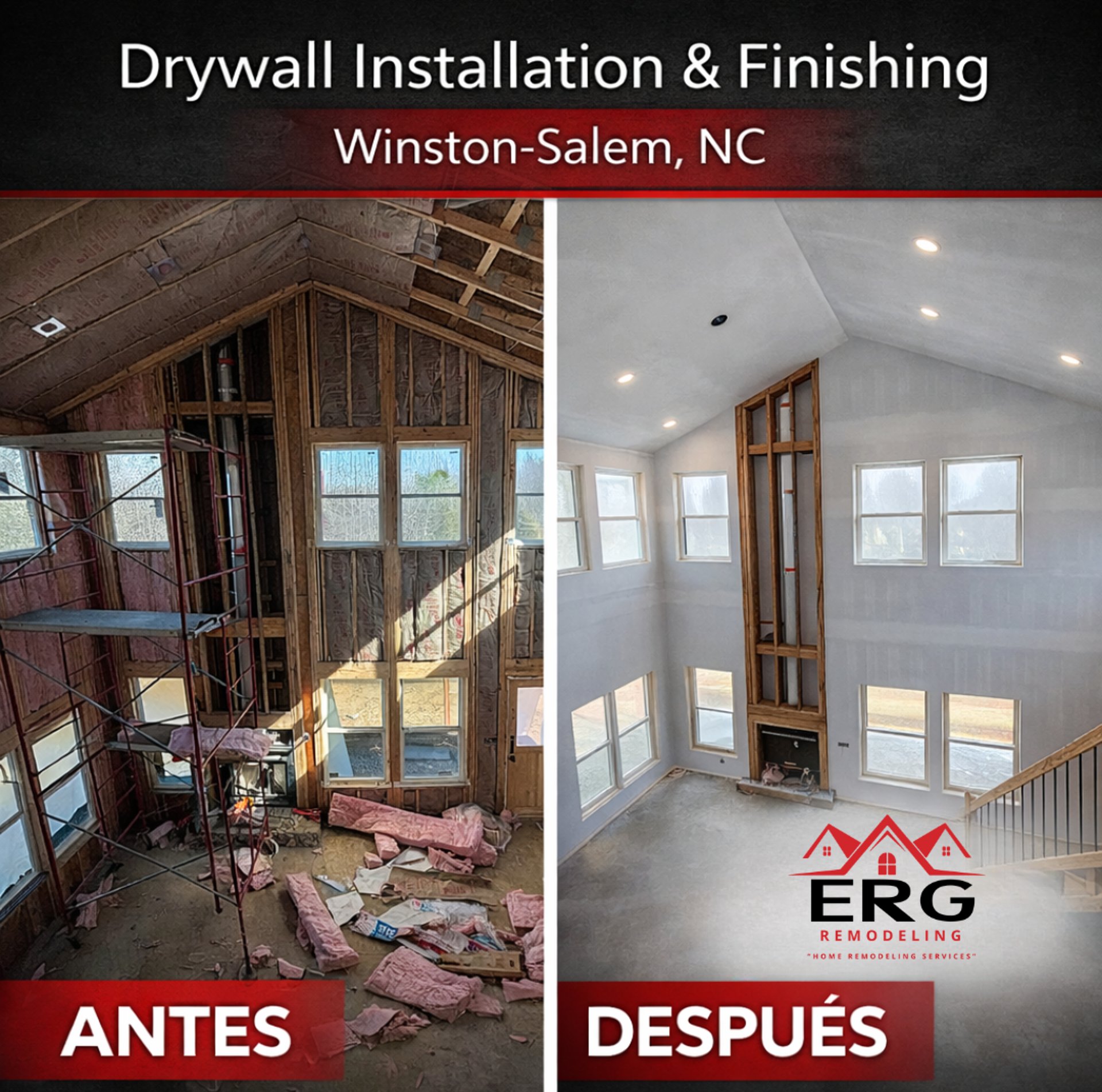 While drywall installation and finishing is our main specialty, ERG Remodeling LLC also offers additional home improvement services in Winston-Salem, Greensboro, High Point and surrounding NC Triad areas.